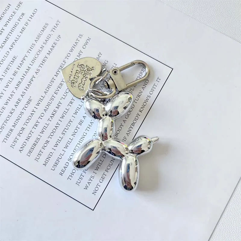 Cartoon Balloon Dog Couple Keychains Key Ring Women Men New Bling Cute Pet Bag Car Holder Airpods Box Jewelry Friend Gift